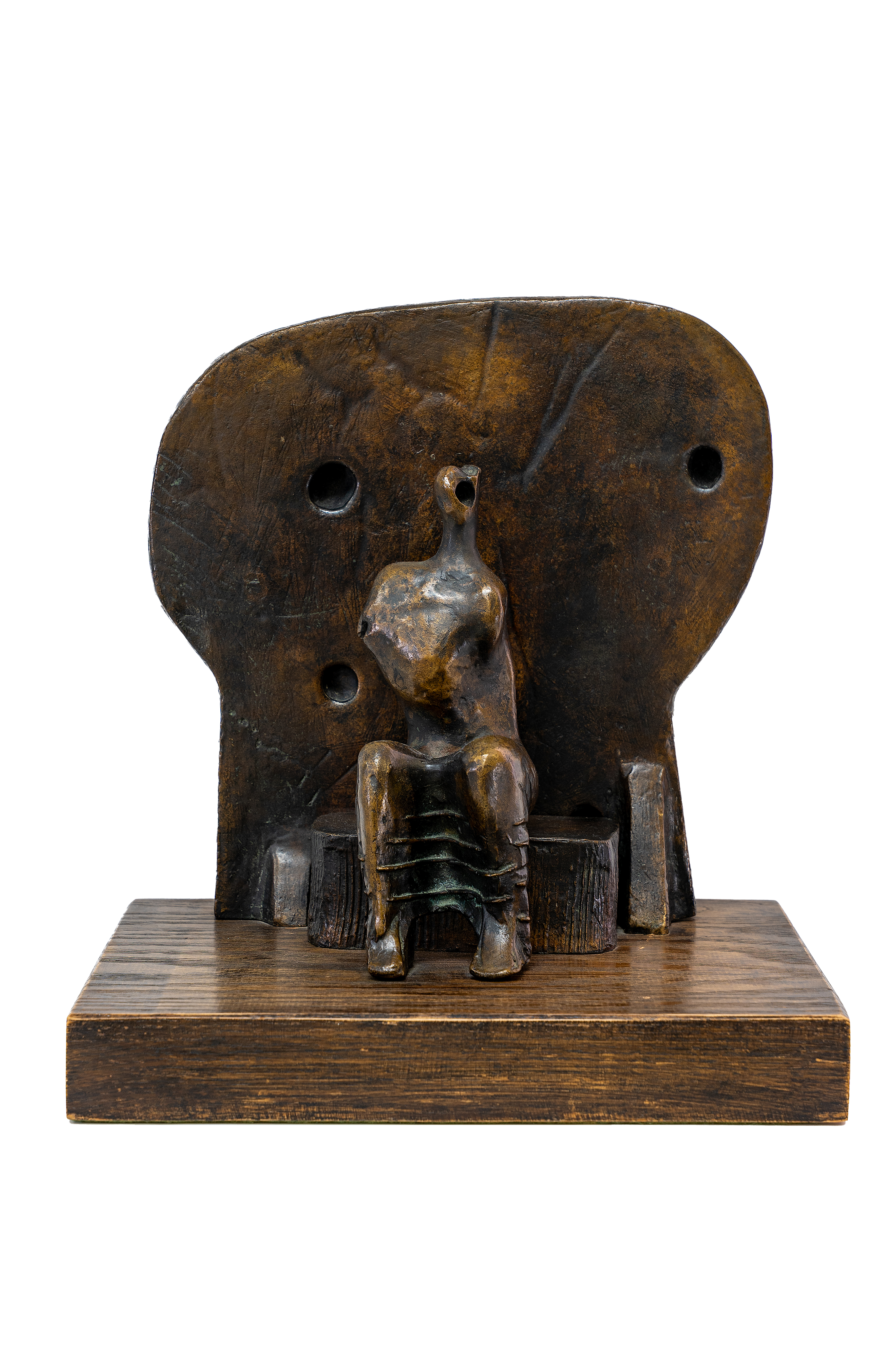 Henry Moore Armless Seated Figure Against Round Wall-7778 1957 Bronze/ Figure: 8 inches High Wall: 11 inches High Bench: 5 x 2.5 inches High Enquire Provenance -Laing Galleries, Toronto Ontario -Private Collection, Toronto Literature -Henry Moore: Sculptures and Drawings Volume 3, Sculpture 1955-64, cat no. 438, illustrated pp.49 |